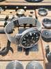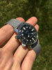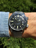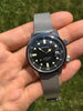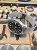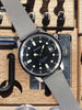 Condition: Fantastic original condition overall with minor honest wear consistent with age and use; solid stainless steel Brevet Super-Compressor case remains thick with the original bevels in tact; crisp screw-down caseback is clearly legible throughout; beautiful original matte black dial with creamy patina to the Tritium luminous elements; original Tritium handset with matching patina; clean original domed acrylic crystal with internal date magnifier
