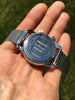 Features: Stunning original matte black dial with date display at 3 o'clock and creamy patina to the Tritium luminous elements; original Tritium handset with matching patina; original inner dive bezel with luminous triangle at 12 o'clock displays elapsed time and rotates via the top crown; solid stainless steel Brevet Super-Compressor case with original oversized crowns and great proportions; original tall domed acrylic crystal with internal date magnifier; cool retro mesh bracelet