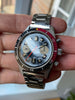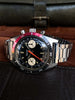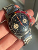 Condition: Mint original condition overall with only very minor honest wear consistent with storage and handling; solid stainless steel case is completely unpolished with razor-sharp edges and bevels; crisp caseback remains clearly legible with the original finishes and one small tool mark on the outer edge; incredible original glossy black dial retains its mirror-like finish with very attractive yellow Tritium lume and no visible wear; excellent original Tritium handset with matching yellow patina; original bright orange chronograph sweeping-seconds hand; original red/black diver bezel is vibrant with its original lume pip present and one small ding on the outer edge near 47-minute marker; clean original acrylic super-dome crystal; vintage bracelet matches the overall condition of the watch