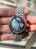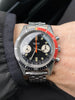 Features: Stunning original glossy black dial with beautiful yellow Tritium lume; original handset with bright orange chronograph sweeping-seconds; 30-minute chronograph recording capability; original elapsed-time diver bezel (red/black); original acrylic super-dome crystal; unpolished stainless steel case; workhorse Valjoux 7733 movement (serviced)