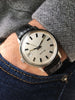 Strap: 18mm black genuine leather strap with polished stainless steel tang buckle