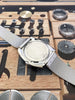 Condition: Very nice original condition overall with minor honest wear consistent with age and use; solid stainless steel case is thick and sharp; caseback remains clearly legible; beautiful original brushed metallic grey dial with crisp white printing throughout and attractive yellow patina to the Tritium lume plots (lume plots at 9 and 10 o'clock are partially flaked off); fantastic original white hands with all Tritium luminous material in tact and matching; clean domed acrylic crystal