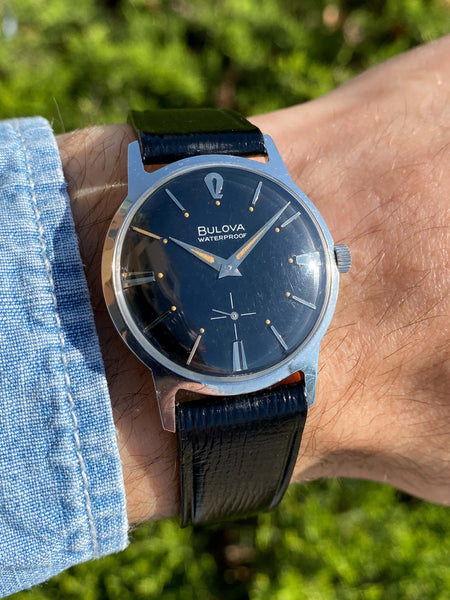 Other: Here at watchsteez.com, we are huge fans of vintage Bulova. Fortunately for collectors, the brand is still undervalued. This rare Surf King "FW" variant is a perfect example of why we love the brand - You can get a super cool model with a great dial in mint condition with a solid stainless steel case powered by a quality Swiss movement for under $500. As an added bonus, the movement has already been completely overhauled by our watchmaker! The Bulova Surf King is classic, minimal, and can double as a black-tie watch or casual weekend wearer. Just check out the art-deco "12" on the glossy mirror dial with perfect golden yellow lume. The entire watch just glistens out in the sun.