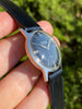 Strap: Rare vintage new old stock (NOS) 11/16" Bulova black genuine saddle leather strap with stainless steel tang buckle