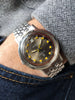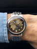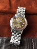 Condition: Fantastic original condition overall with minor honest wear consistent with age and use; razor-sharp stainless steel case appears to be completely unpolished with defined bevels on each of the lugs; crisp screw-down caseback remains clearly legible with a few toolmarks; gorgeous original exotic dial with vibrant colors throughout; all Tritium lume plots are present on the dial and have aged to an attractive yellow hue; original Tritium hands with all luminous material in tact and matching; domed acrylic crystal appears to be original to the watch; nice original stainless steel bracelet exhibits some scratches on the clasp