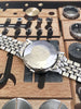 Bracelet/Strap: Rare original 18mm solid stainless steel linked bracelet with signed Candino fold-over clasp (will fit approximately a 6.75" to 7.5" wrist via the clasp adjustment without removing any folding links); also includes 18mm Maratac green nylon NATO strap with stainless steel hardware