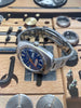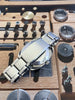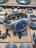 Condition: Very nice original condition overall with minor honest wear consistent with age and use; sharp solid stainless steel case appears to be unpolished with sharp bevels and the original sunburst finishes in tact; crisp screw-down caseback remains clearly legible; excellent original "fluted" bezel; incredible original matte blue dial with vibrant Wynn's Racing logo and all Tritium lume plots in tact and aged to an attractive yellow hue; original Tritium hands with all luminous material in tact; beautiful original bright orange sweeping-seconds hand; clean domed acrylic crystal