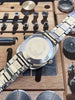 Features: Stunning original matte blue dial with colorful Wynn's Racing logo and dual-color day-date display; original Tritium hands; original bright orange center sweeping-seconds hand; Swiss automatic movement with quick-set date; 36mm stainless steel case with "fluted" bezel and domed acrylic crystal; rare original Caravelle bracelet
