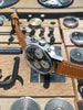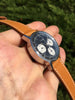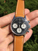 Other: If you're looking for a vintage chronograph watch reminiscent of iconic Heuer designs without spending a fortune, this rare Clebar chronograph is a solid value play. In fact, the dial and handset are nearly identical to the legendary (and extremely expensive) Heuer Carrera 2447NST that we all know and love. Simply put, it's hard to beat the matte black dial with contrasting bright white sub-registers and tachymeter scale for racing. The reverse panda dial really comes to life in the sun as does the desirable golden yellow patina to the luminous elements. Just like the original Heuer Carrera, this case wears incredibly well on the wrist with fantastic proportions clocking in at ~36mm in diameter. It comes on a comfortable 19mm handmade tan calfskin strap, but really looks great on just about everything!