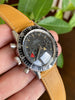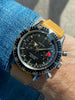 Croton (and Nivada Grenchen) produced many variations of the Chronomaster and this particular reference 9870 is in top condition and one of the most desirable iterations. Reference 9870 is easily distinguishable by its shiny black stepped sub-register rings, which look so much better and more dynamic than the "flat" matte registers. It features lume dots similar to the Omega Speedmaster. The "5-4-3-2-1-0" countdown numerals printed within the red minute sector are used for regatta racing. We love the small "alpha" register hands and awesome broad-arrow hour hand. The overall design is very balanced and looks absolutely killer on the wrist! The 9870 is powered by a high-grade Valjoux 23 movement, which is based on the legendary Valjoux 72 (but in two-register format). It comes with smooth column-wheel activation. For peace of mind, our watchmaker has completely overhauled the movement with a new acrylic crystal and gaskets (in the crown, pushers, and caseback) installed at the time of service.