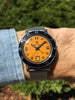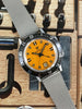 Model: Wrist Alarm Diver ref. 9877 with orange dial and 12-hour bezel (RARE); Swiss Made circa 1960s