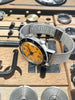 Condition: Fantastic original condition overall with minor honest signs of wear consistent with age and light use; sharp solid stainless steel case is completely unpolished with the original finishes throughout; caseback remains clearly legible with some minor toolmarks; beautiful original glossy orange dial is bright and vibrant with attractive yellow patina to the Tritium luminous elements; original Tritium handset with matching lume; excellent original rotating 12-hour bezel; clean original domed acrylic crystal