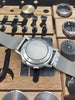Case: Solid stainless steel case with two-piece screw-down back is approximately 36mm across the bezel excluding the matching original unsigned winding crowns
