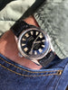 Condition: Fantastic original condition overall with minor honest wear consistent with age and light use; sharp solid stainless steel case appears to be unpolished with sharp edges and bevels throughout; crisp "bayonet" caseback remains clearly legible; incredible original glossy black gilt dial shines like a mirror with all luminous material in tact and aged to an attractive hue; original hands with all luminous material in tact and matching; 18mm Swiss Tropic strap remains supple and very wearable