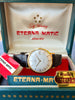 Case: Solid 18K yellow gold case with snap-back is approximately 35mm excluding the original Eterna signed winding crown