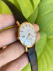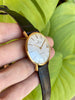 Strap: 18mm dark brown genuine alligator strap with 14mm signed Eterna Swiss yellow gold-plated tang buckle