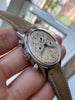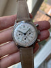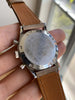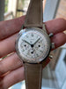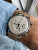Features: Stunning original silver luminous dial with vibrant three-color print; original matching blued-steel luminous handset; crisp oversized stainless steel case with screw-down back and domed acrylic crystal; high-grade EP40-68 three-register chronograph movement with 12-hour recording capability; desirable model and very rare in this condition