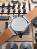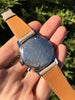 Strap: New 20mm handmade soft marbled calfskin strap with contrast stitching and polished stainless steel tang buckle