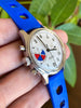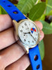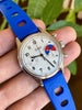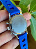 Strap: 18mm vintage NOS blue Swiss Tropic Sport rubber strap with original 16mm stainless steel tang buckle
