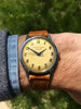 Strap: Vintage 18mm genuine leather strap with matching stitching and polished tang buckle
