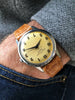 Other: This rare GP Sea Hawk is as unique as it is stunning with one-of-a-kind patina and once it's gone, you won't find another one like it. We love the large "Thrasher" numerals in super cool "Banco" typeface and the dark blued-steel handset. The original lume has aged to beautiful golden yellow hue all around and the dial pops in any lighting condition (especially out in the sun). The steel screw-back case slides nicely under a cuff and sits comfortably on the wrist. If you're looking for a versatile and awesome conversation piece, this is it!