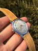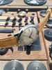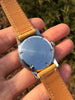 Strap: 18mm handmade tan calfskin strap with polished stainless steel tang buckle