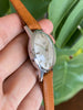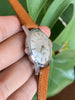 Strap: 18mm vintage NOS Gruen genuine leather strap with matching stitching and 14mm gold-tone tang buckle