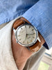 Other: Looking for an affordable and attractive vintage dress watch with a serviced movement that is ready to wear and enjoy? Look no further than this beautiful Gruen time-only watch from the early 1960s with 510SS manual-winding movement. The silver dial is clearly the star of the show here with its deep sunburst finish curving outward toward the edge of the dial. We also love the luminous hands. The slender 34mm case wears comfortably on the wrist and slides nicely under the cuff of a dress shirt, but it can also be worn casually with a t-shirt and jeans.