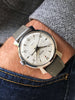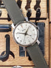 Other: Our founder (Justin Vrakas) is an avid collector of vintage mechanical alarm watches, so we are extremely proud to offer this rare and fine Gruen Alarm in exceptional original condition. We located this particular example in Switzerland, which makes sense given that it is a Swiss model (see "SWITZERLAND" text at the bottom of the dial). This Gruen 910SS was manufactured in the 1950s and fitted with a beautiful Langendorf 1244 movement, which is controlled entirely by a single crown and features an open aperture at 12 o'clock to indicate whether the alarm is on or off. The movement contains two separate barrels for the watch and alarm. The alarm barrel is wound by turning the crown clockwise (toward 12:00) and the mainspring barrel is wound by turning the crown counter-clockwise (toward 6:00). It has two separate setting positions for the alarm hand and time. This watch is as unique as it is cool and represents an advance in mechanical alarm technology! Also, the 35mm stainless steel case with fat lugs wears incredibly well on the wrist. For those of us that are tired of seeing the same watches over and over again, we guarantee that you won't run into anyone else wearing this watch...