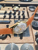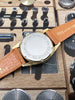 Case: 10 microns yellow gold-plated case with stainless steel screw-down back is approximately 34mm excluding the original winding crown