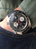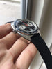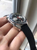 Condition: Fantastic original condition overall with minor honest wear consistent with age and use; solid stainless steel case remains thick and sharp with great bevels and the original sunburst brushing still visible on the top of the case; crisp screw-down caseback; reference number and serial number are both clearly legible between the lugs; beautiful original matte black dial with vibrant red accents and creamy yellow Tritium lume (small lume dots at 3 and 9 o'clock have mostly flaked off); original Tritium hands are in great condition with matching original lume; original chronograph register hands are also in great condition; original black tachymeter bezel exhibits some minor wear along the edges