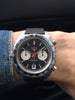 Features: Stunning original matte black dial with contrasting white sub-registers and bright red accents; original handset; Heuer cal. 12 micro-rotor automatic movement with 12-hour chronograph recording capability; balanced date display at 6 o'clock; original black tachymeter bezel displays the average speed of a moving object over time (useful in racing applications); oversized stainless steel case with screw-down back and acrylic crystal