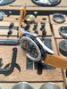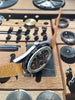 Features: Stunning original glossy black dial with incredible yellow patina to the luminous elements and date display at 3 o'clock; original luminous hands with matching yellow patina; original white center sweeping-seconds hand; original black tide-indicator bezel tracks the tide percentages throughout the day; original silver inner rotating bezel independently tracks a second time zone or the tide percentages in a second time zone (i.e. a destination city while sailing); oversized stainless steel case; original domed acrylic crystal with internal date magnifier
