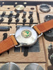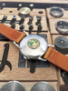 Case: Solid stainless steel case with screw-down back and green enameled "fish" emblem is approximately 35mm excluding the original signed winding crown; lug #662; inner caseback is stamped "9024 2" and "437"