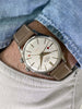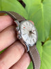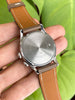 Case: Solid stainless steel case with two-piece screw-down back is approximately 34mm excluding the original unsigned winding crowns