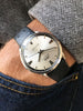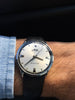 Features: Stunning original silver sunburst dial with applied hour markers and "Mido" signature logo; original handset; factory signed Mido crystal with correct black luminous tension ring; patented Ocean Star stainless steel "waterproof" case