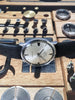 Condition: Fantastic original condition overall with minor honest wear consistent with age and use; solid stainless steel case appears to be unpolished or very close to it with sharp edges; crisp caseback remains legible with a few minor superficial scratches; very attractive original silver sunburst dial; nice black Mido tension ring with minute hashmarks and all lume plots in tact (lume plots have aged to a beautiful yellow hue); original Tritium hands with all luminous material in tact; clean factory Mido domed acrylic crystal