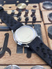Strap: Vintage 18mm black Tropic-style perforated diver strap with stainless steel tang buckle
