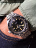 Other: This rare 1960s Mondaine Diver has a lot going for it and it all starts with the ultra-glossy black dial - Check out the yellow lume! We love the subtle pop of red color on the date disc, which is magnified by the original domed acrylic crystal. The solid stainless steel case with rotating diver bezel is a great size at 37mm and the "Jubilee" style bracelet completes a killer look that can be worn with just about anything. Install the black watchsteez NATO strap for a more casual, tool-watch vibe...