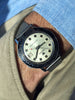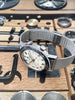 Condition: Nice original condition overall with minor honest wear consistent with age and use; sharp solid stainless steel case appears to be unpolished; fantastic two-piece screw-down caseback remains clearly legible with the original brushed finish in the center; original silver sunburst dial with crisp printing exhibits some light patina and wear; all Tritium lume plots are present on the dial and have aged to an attractive yellow hue; original Tritium hands with all luminous material in tact and matching; clean domed acrylic crystal