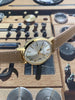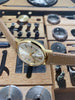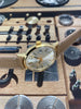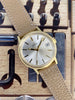 Case: 20 microns yellow gold-plated case with stainless steel screw-down caseback is approximately 35mm excluding the original signed Omega winding crown