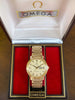Case: Solid 14K yellow gold case is approximately 35mm excluding the original signed Omega winding crown