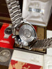 Condition: New old stock, all original, and unworn with only the lightest signs of "shelf wear" from storage and careful handling; factory red wax seal is still in tact on the caseback (watch remains unopened and untouched); perfect original Tritium dial with all luminous material in tact and matching; flawless original Tritium handset with matching lume; original domed acrylic crystal; tight and mint original 1171 bracelet