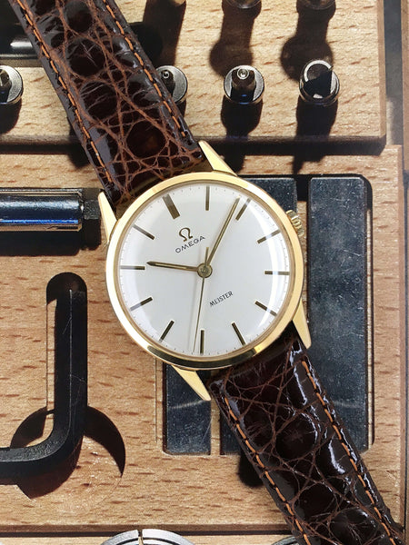 Other: Looking for a beautiful vintage dress watch from a powerhouse brand? Look no further than this sleek manual-winding Omega from 1962. This particular example is in collector-grade condition and appears to have been worn only a handful of times. As an added bonus, the dial is double-signed with the "MEISTER" logo as it was originally retailed by the well-known Swiss jewelry boutique. At 33mm, it's the perfect size that slides under practically any cuff - We recommend dressing it down once in a while with a white t-shirt and jeans!