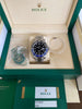 Features: Stunning glossy black dial; Chromalight display with long-lasting blue luminescence; luminous handset; 40mm stainless steel Rolex Oyster case with blue/black "Batman" Cerachrom (ceramic) bezel insert; scratch-resistant sapphire crystal with cyclops lens over the date; original Rolex Jubilee bracelet (full links); Rolex 3285 Chronometer-grade movement; complete set with original outer sleeve, inner and outer boxes, warranty card dated December of 2019, booklets, hang-tags, and plastic bezel protector