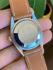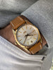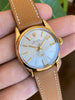 Strap: 19mm new handmade textured tan calfskin strap with contrast stitching and 16mm yellow gold-plated tang buckle