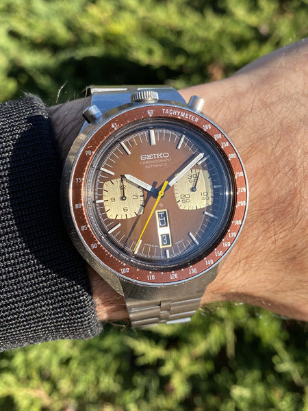 Model: "Bullhead" Automatic Chronograph ref. 6138-0049 (Brown Dial) circa October of 1977; Made in Japan