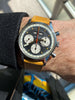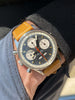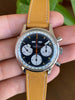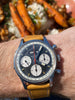 Features: Gorgeous original reverse-panda dial with stunning yellow Tritium patina on the hour markers; original handset with matching yellow Tritium patina; triple calendar (day, date, month); 12-hour chronograph recording capability; unpolished solid stainless steel case with domed acrylic crystal