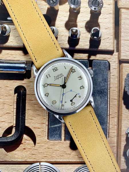 Other: This rare 1950s Zodiac Autographic 666 features a beautiful silver dial with luminous hour markers and innovative power reserve display at 6 o'clock. In fact, the Zodiac Autographic was described as "The World's Most Modern Watch" back then as it became the very first automatic wristwatch with a power reserve indicator. As HODINKEE once pointed out, "The function and calculation behind this innovative up-and-down indicator are thoroughly presented in a 1949 paper written by a watchmaker for the Journal Suisse d’Horlogerie et de Bijouterie, who emphasizes the necessity for having a design for a power reserve indication that doesn't interfere with the action of the main gear train, as well as the technical challenges involved in implementing a power reserve in an automatic watch."