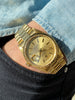 Other: The Rolex market is on absolute fire right now, but this gorgeous 36mm Rolex Day-Date is proof that you can still get a great vintage Rolex watch at a relatively affordable price point. For comparison, a basic brand new yellow gold Day-Date 36 starts at over $33K (IF you can even get one). It's just difficult to imagine a better place to park your cash right now. We've been saying for the past 6+ months (when these Day-Dates were only $13-14K) that they'd be starting at $20K and up within a year or so. Well, here they are climbing quickly... It's a lot of watch for the money if you think about it - You get the perfect blend of vintage and modern being that this is an early example of an 18238 with Tritium lume and double-quickset day and date. It even retains its correct early date wheel with open 6/9! This one is particularly classic with its quintessential champagne dial and tight original President bracelet with sleek hidden clasp. Tony Soprano who? The watch for sale here was just serviced on December 23, 2021 and comes with its green two-year Rolex warranty card, service booklet, and new style Rolex leather service pouch. In order to guarantee factory water resistance throughout the warranty period, a new Rolex double-AR coated sapphire crystal, gold Rolex Monobloc crown and case tube, and fresh gaskets were installed at the time of service.